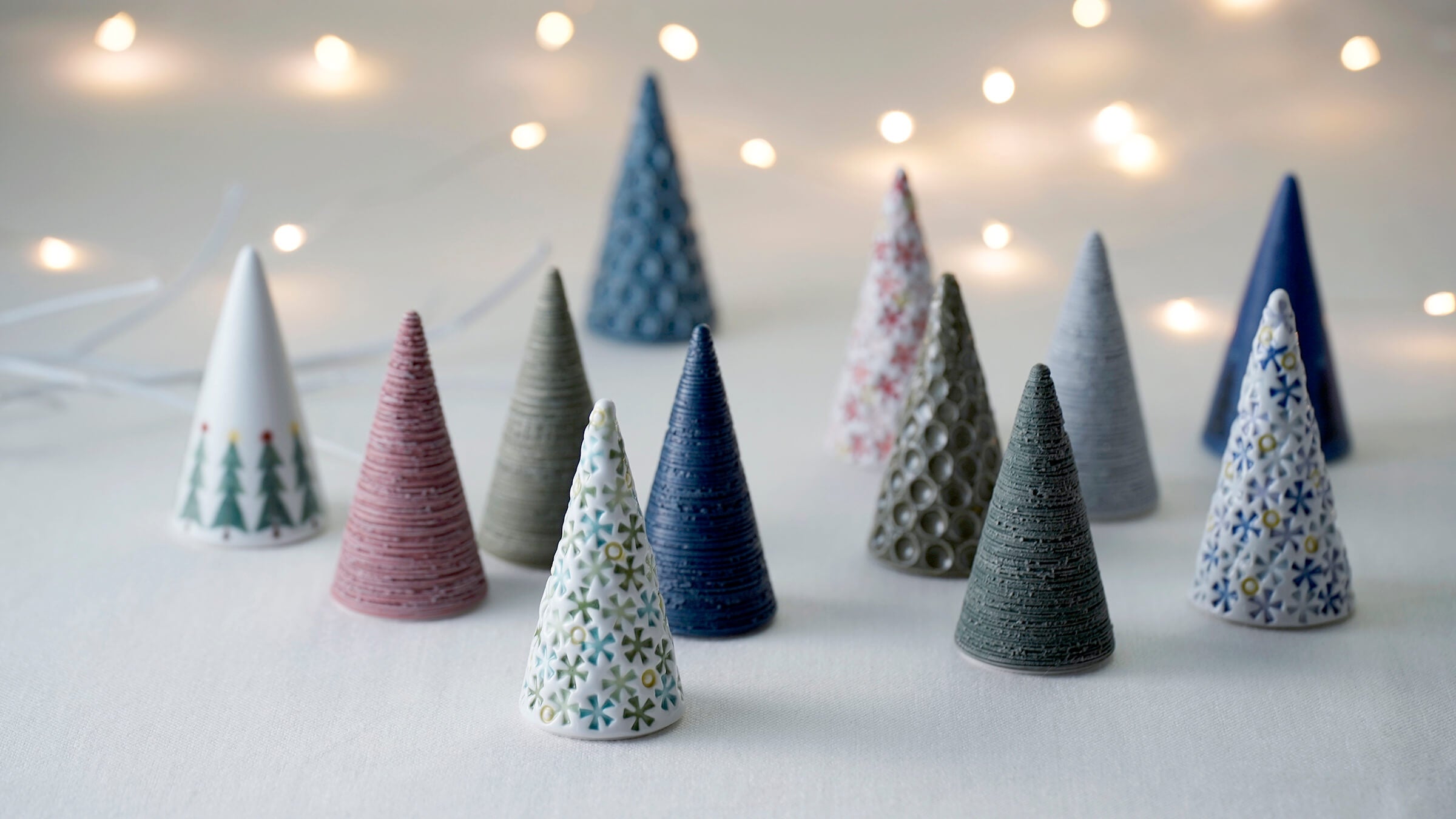 濃淡で表現した幾何学的なパターンがマット釉の落ち着いた色あいになじみ、カジュアルなクラフト感を感じさせる「TINT」。