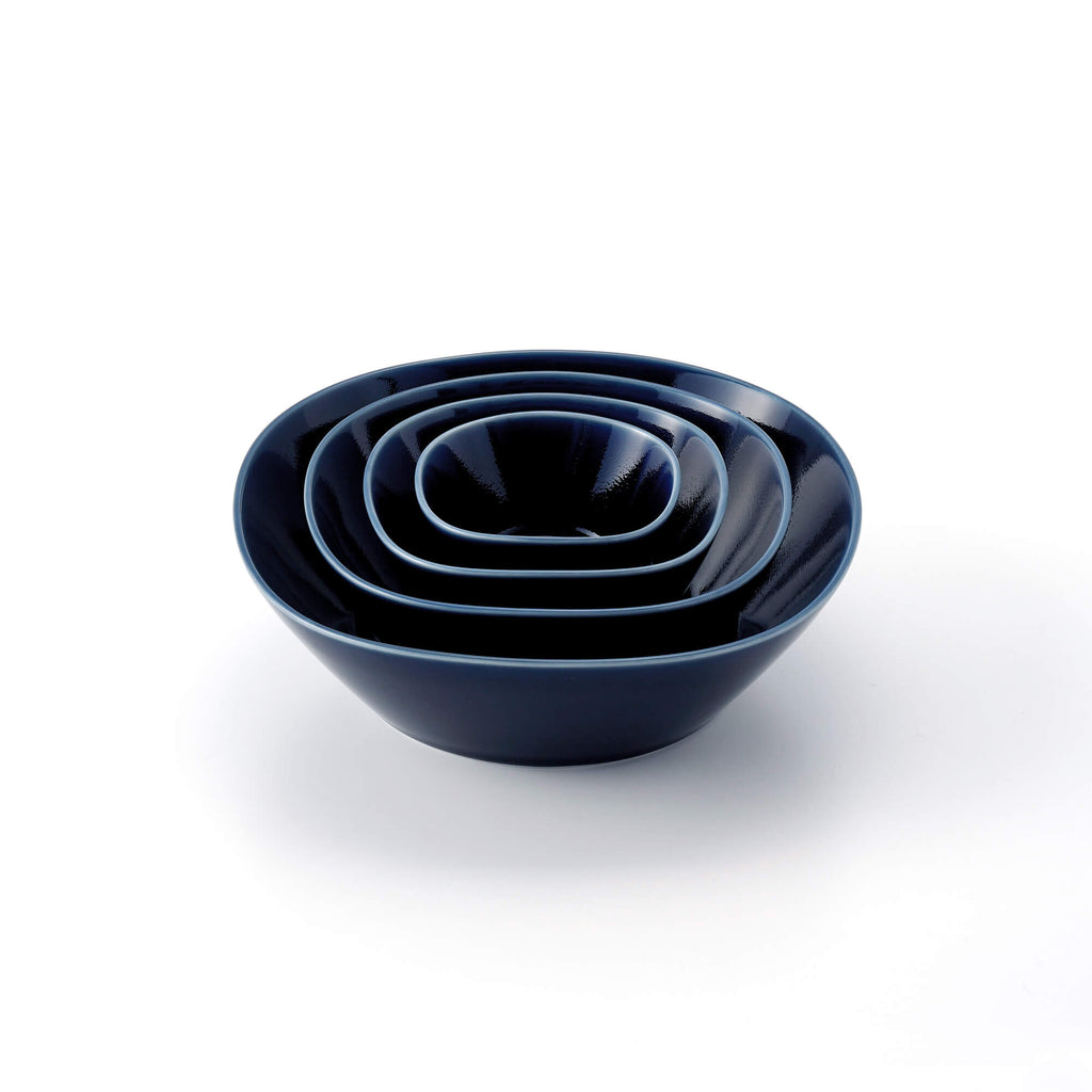ゆるやかな起伏を持つ四角の口縁は、見る角度によって表情を変えながら食卓に新鮮なリズムを添えます。